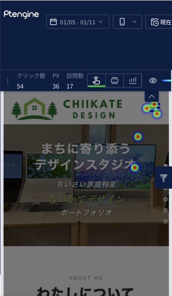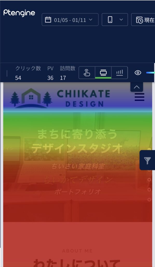 「どこまで読まれたか」を一目で把握。スクロール率を可視化し、離脱ポイントを分析。“見てもらえない情報”を減らすことで、ユーザーが最後まで自然に読める構成へ改善します。 ヒートマップ全体から、閲覧されやすいエリアを分析。赤い部分ほどユーザーが長く見ている領域です。 「クリックが集まる場所」には、ユーザーの興味の答えが隠れています。どんな要素に注目が集まったのかを見える化し、反応の高い部分から“伝わるデザインのヒント”を導きます。